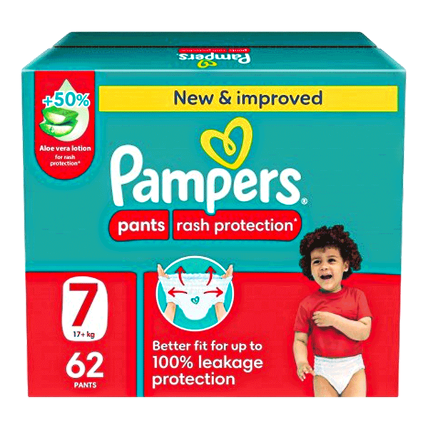 حفاضات بامبرز المضادة للطفح الجلدي بملاءمة 360° ونسيج قابل للتنفس للجفاف طوال اليوم - المقاس 7