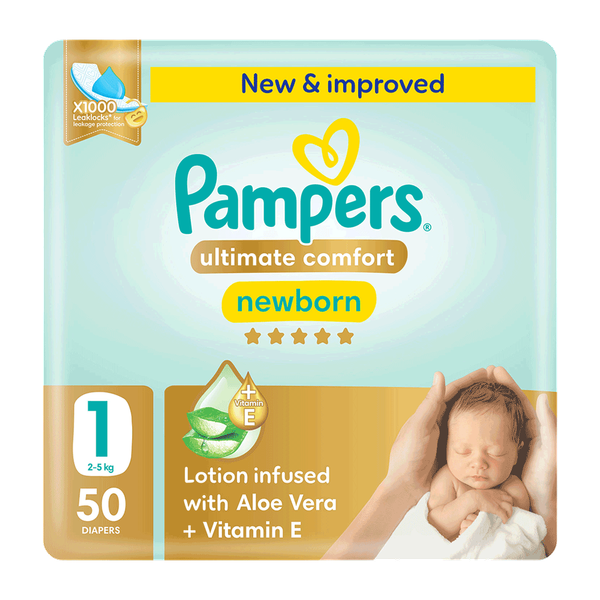 حفاضات بامبرز ألتيميت كومفورت بشريط لاصق للمواليد بملمس قطني ناعم - المقاس 1