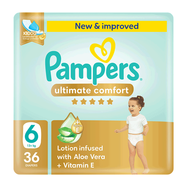 حفاضات بامبرز ألتيميت كومفورت بشريط لاصق بأشرطة مرنة ونواة تجفيف - المقاس 6