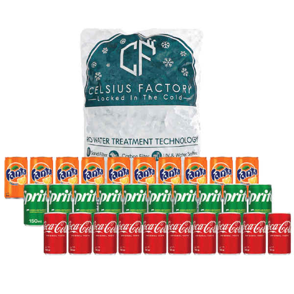 يحتوي الطقم على: فانتا برتقال - 10 x 150 ml / كوكاكولا - 10 x 150 ml / سبرايت - 10 x 150 ml