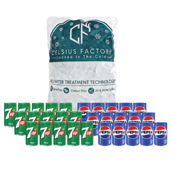 يحتوي الطقم على: بيبسي عادي - 15 x 150 ml / سفن أب عادي - 15 x 150 ml