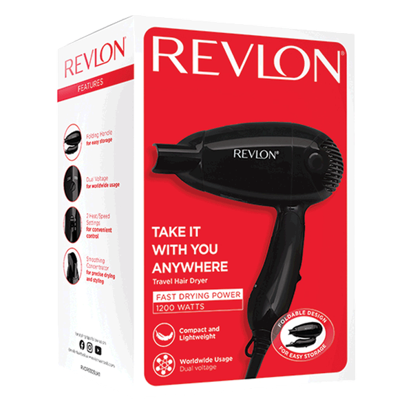 مجفف شعر مدمج وخفيف مثالي للسفر مع جهد مزدوج ومقبض قابل للطي - 1200 واط