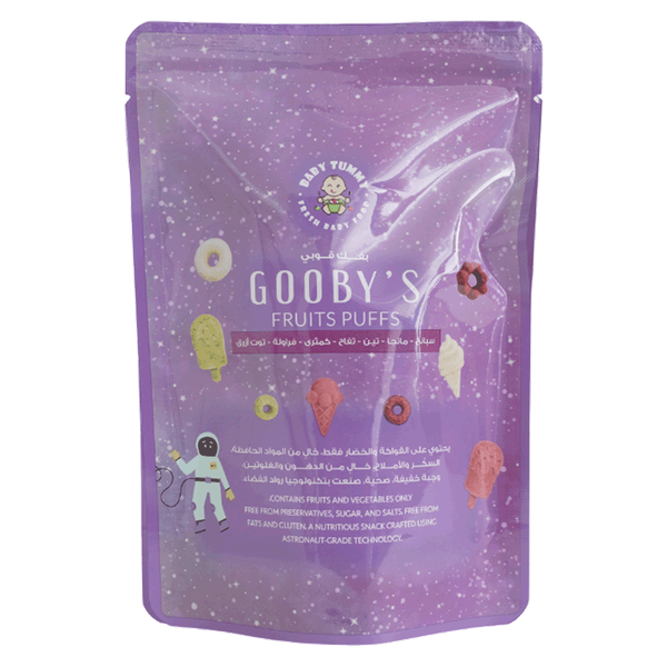 المكونات: سبانخ - مانجا - تين - توت أزرق - فراولة - كمثرى العمر المناسب: حسب قدرة الطفل على المضغ مدة الصلاحية: سنة من تاريخ الإنتاج المميزات: يعتبر المنتج الأول الذي يتكون من فواكه كاملة وخضار، ولا يحتوي على نكهات أو عصائر أو سكر أو أي إضافات أخرى. سناك صحي ١٠٠٪.