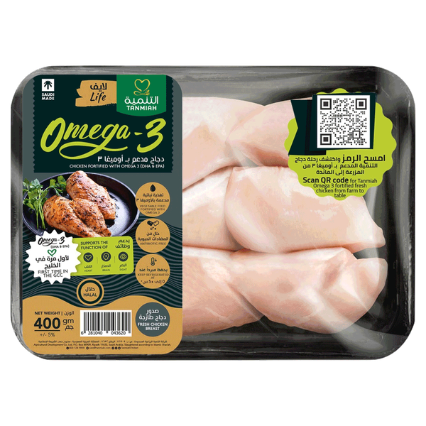 Omega-3 chicken breast rich in protein and nutrients for healthy meals - 400 gm