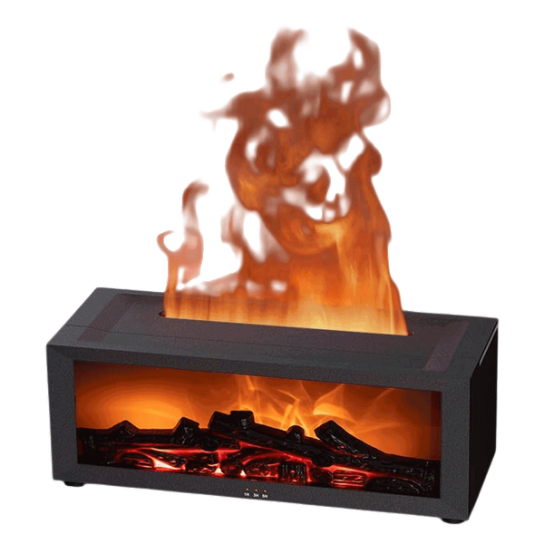 ناشر عطر ديكوري يتميز بتأثير لهب مدفأة ثلاثي الأبعاد واقعي - أسود