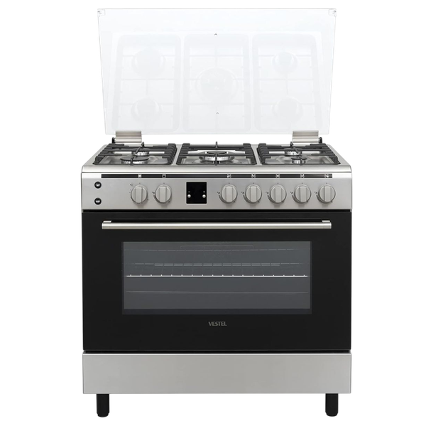 فرن غاز Vestal قياس 90×60 - ‏5 شعلات - ستانلس ستيل - أمان كامل - Drops