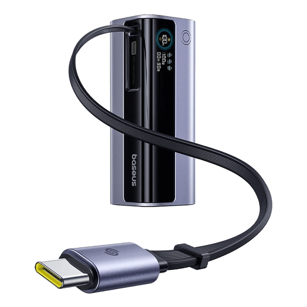 كابل USB-C قابل للسحب بطول 60 متر وقوة 100 واط مدمج شاشة رقمية ذكية (LCD بحجم 1.2 بوصة) لعرض حالة الشحن، ونسبة البطارية، والواط النشط واجهة الإدخال: USB-C واجهة الإخراج: USB-C × 2 (كابل مدمج واحد)، USB-A × 1 ميزات الأمان: حماية من الدائرة القصيرة، تحكم في درجة الحرارة، مواد مقاومة للحريق، تنظيم الشريحة الذكية اللون: رمادي