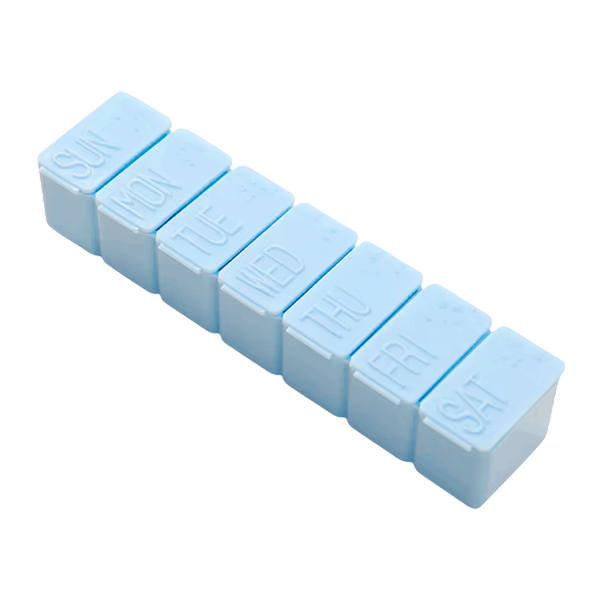 علبة تحتوي على 7 خانات منفصلة لكل يوم لفصل وترتيب مختلف الأدوية والفيتامينات