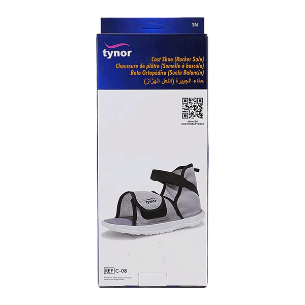 جبس حذاء للقدم اليمين، مصمم لتوفير الحماية والدعم والثبات في حالات إصابات القدم أو بعد العمليات الجراحية