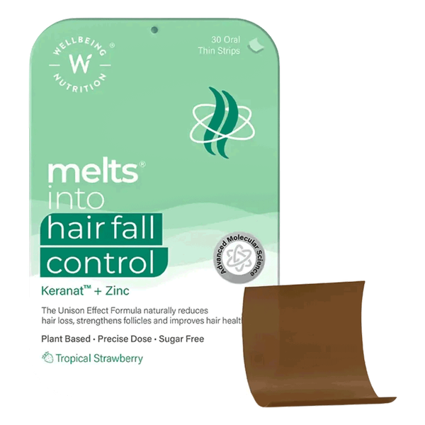 يساعد هذا الشريط الفموي سريع المفعول والمكون من مكونات نباتية 100٪ على تقليل تساقط الشعر، وتعزيز صحته وكثافته. يحتوي على كيرانات، وهو مركب مسجل ببراءة اختراع، ويحتوي كذلك على معادن أساسية مثل الحديد والزنك لتحسين كثافة الشعر وتحفيز نموه - 30 شريط
