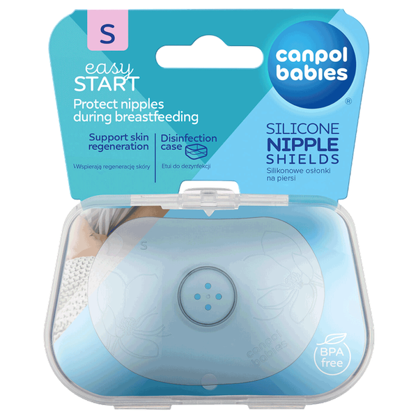 واقيات الحلمة مصنوعة من السيليكون الناعم، الذي يحمي الحلمات المتشققة والملتهبة، ويحفز عملية الشفاء، ويسمح بالرضاعة الطبيعية بدون ألم. السيليكون عديم الطعم والرائحة ولا يغير طعم الطعام. بالإضافة إلى ذلك، تأتي واقيات حلمات Easy Start في حاوية بلاستيكية، مما يسهل الحفاظ عليها نظيفة.تساعد علبة التعقيم الخاصة في الحفاظ على نظافة الواقي. فهي تمكن من التطهير السريع في دقيقتين في الميكروويف - 2 قطعة