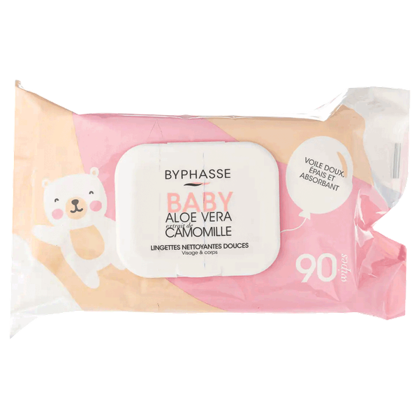 مناديل لطيفة وفعالة، مصممة لتنظيف وترطيب بشرة طفلك الحساسة. تحتوي على الألوفيرا وخلاصة البابونج لضمان راحة وأمان البشرة للاستخدام اليومي - 90 منديل