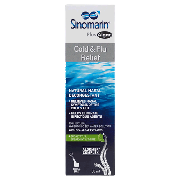 بخاخ أنفي طبيعي 100٪ يحتوي على ماء بحر عالي التركيز (2.3٪ كلوريد الصوديوم)، وزيت الأوكالبتوس، والنعناع، والزعتر، والجلسرين لتخفيف أعراض البرد والإنفلونزا الأنفية، وإزالة الاحتقان، وترطيب الأنف - 100 مل