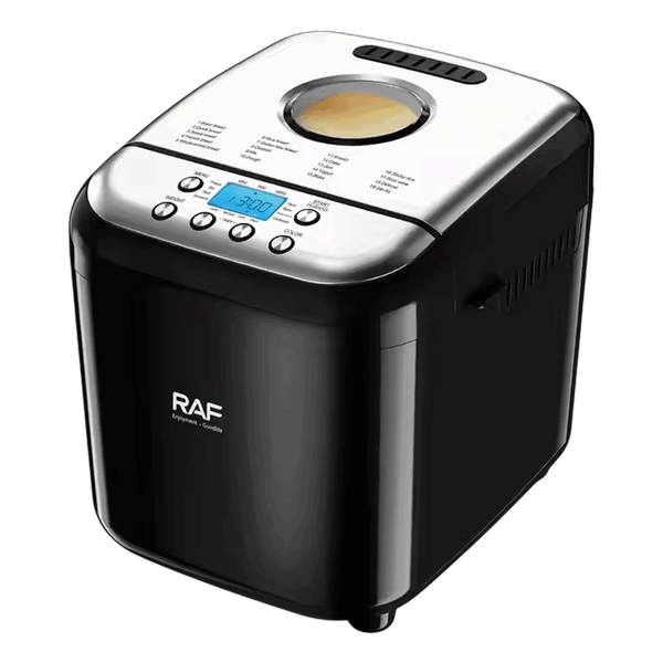 صانعة خبز ذكية بقوة 600 واط مع شاشة LCD، قالب غير لاصق، مؤقت تشغيل، برامج خبز متعددة، تصميم مدمج وسهل التنظيف للحصول على خبز منزلي متناسق - 26 × 26 × 28 سم