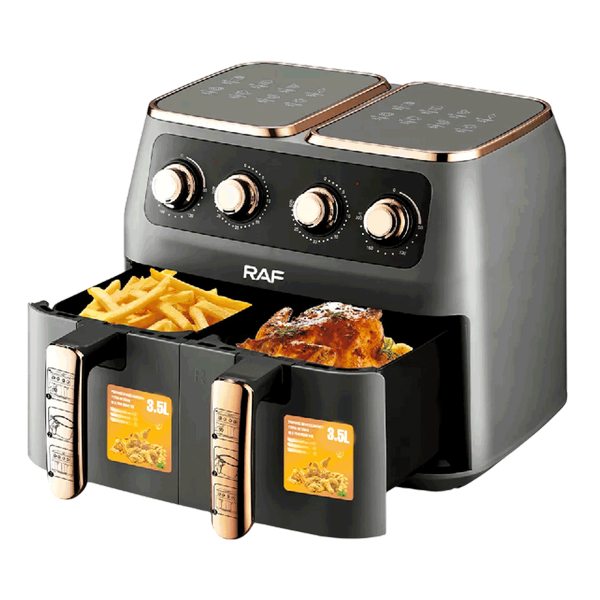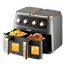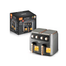 قلاية هوائية مزدوجة بقدرة 2800 واط مع سلتين غير لاصقتين سعة 6 لترات لكل منهما، وتقنية تدوير هواء 360°، وثرموستات قابل للتعديل ومؤقت ميكانيكي، مصممة للقلي الصحي مع تقليل الزيت وسهولة التنظيف - 12 لتر