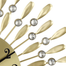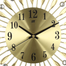 ساعة حائط زخرفية عصرية بتصميم أشعة الشمس من Chinatown تتميز بقرص فضي معدني مصقول مع أرقام سوداء واضحة، وأذرع معدنية مزينة بالكريستال، وحركة كوارتز صامتة بدون صوت، وتصميم دائري خفيف الوزن يعمل بالبطارية ومناسب لغرف المعيشة والنوم والمكاتب.