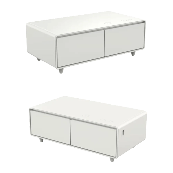 طاولة قهوة ذكية فاخرة مزودة بثلاجة مدمجة بسعة كبيرة، تتميز بنظام تحكم بدرجة الحرارة، لوحة تحكم ذكية، وتصميم عصري يناسب غرف المعيشة والاستقبال - 135 لتر