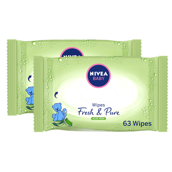 The formula with aloe vera helps maintain skin's protective barrier. Cleanses baby's skin as gentle as pure water and protects the skin from drying out - 2 x 63 Wipes