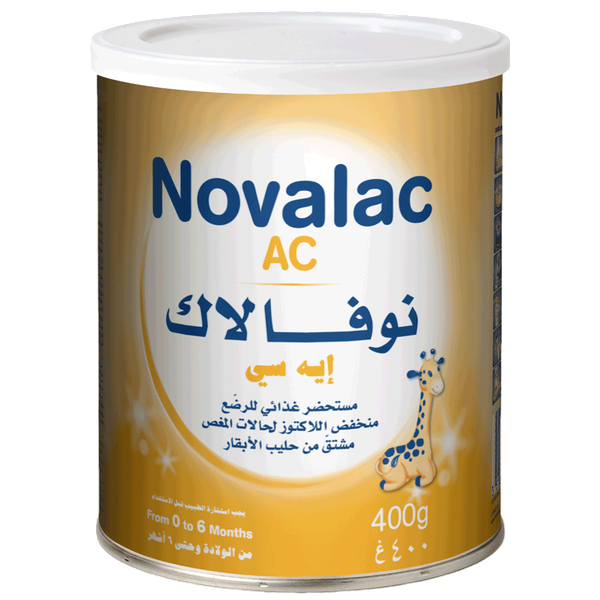 Novalac AC is an infant formula for colic from birth to 6 months with adapted protein and balanced carbohydrates helping reduce crying gas discomfort, supporting digestion and providing complete daily nutrition tolerance for infants.