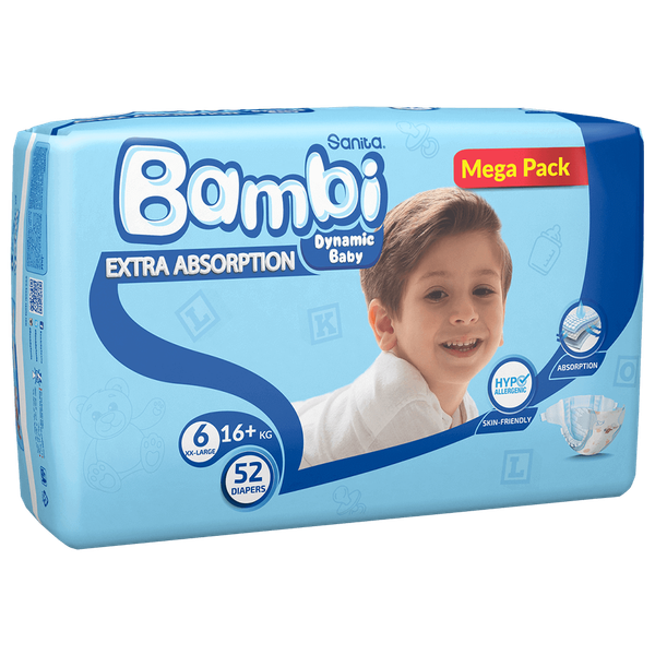 Sanita Bambi Size 6 XX-Large Diapers - (+16 kg) - Drops