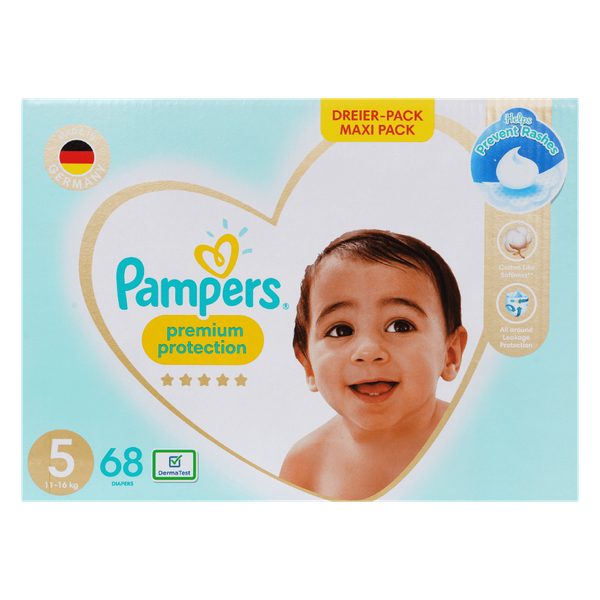 This diaper Keeps wetness away and prevents irritation. Protects your baby’s delicate belly with a perfectly contoured fit - 2 x 68 Diapers