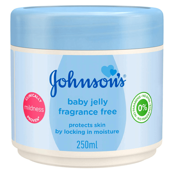 Johnson's fragrance-free baby jelly is enriched with nourishing oil that locks in moisture to keep your baby's delicate skin soft and smooth - 250 g