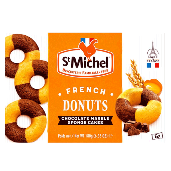 St Michel French Donuts Chocolate Marble are individually wrapped baked fluffy donuts made of high quality natural ingredients. A perfect choice as a snack or as an add to your kid's meal - 180 gm