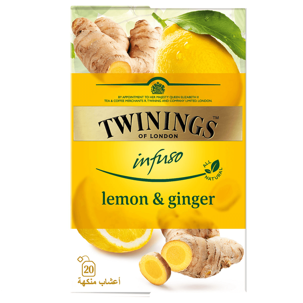 Twinings Lemon and Ginger Tea helps in digestion and improving blood circulations. It is a blend of lemon sourness and spicy ginger with irresistible flavor - 20 Teabags x 2 gm