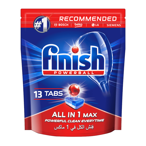 Finish dishwasher detergent tablets gives your dishes an unbeatable cleaning every time. It provides ideal care for your glass, while its rinse agent action helps wash out residue, eliminating spots and film for a brilliant shine and fresh smell - 13 Tablets