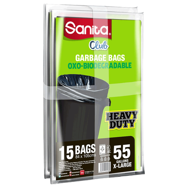 Sanita Club Extra Large Garbage Bags are strong and durable opaque bags. They're anti-leak and eco-friendly bags, break down easily in nature, safe and non-toxic - 30 x 55 Gallon