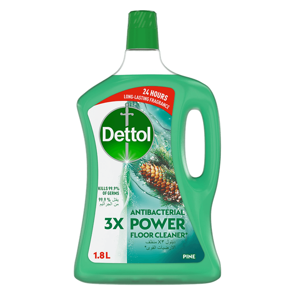 Dettol Antibacterial Power Floor Cleaner has 3 times cleaner power that removes 100 types of tough stains, kills 99.9% of illness-causing germs and disinfects your floors. It imparts an amazing and 24 hours of long-lasting pine fragrance - 1.8 L