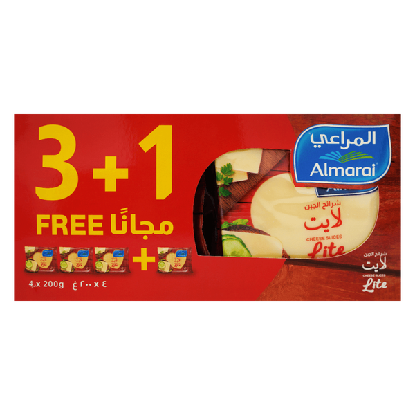 Almarai Cheddar Cheese Slices Low Fat have a rich taste and unique color you'll fall in love with. Enjoy this fat free cheese in sandwiches or as a topping to your dishes - 4 x 200 gm