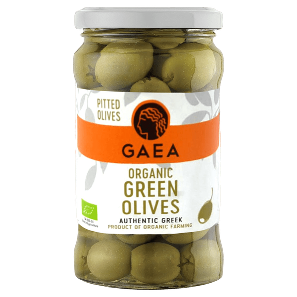 Organic green olives, handpicked for a plump, fleshy texture and rich flavor – 290 gm.