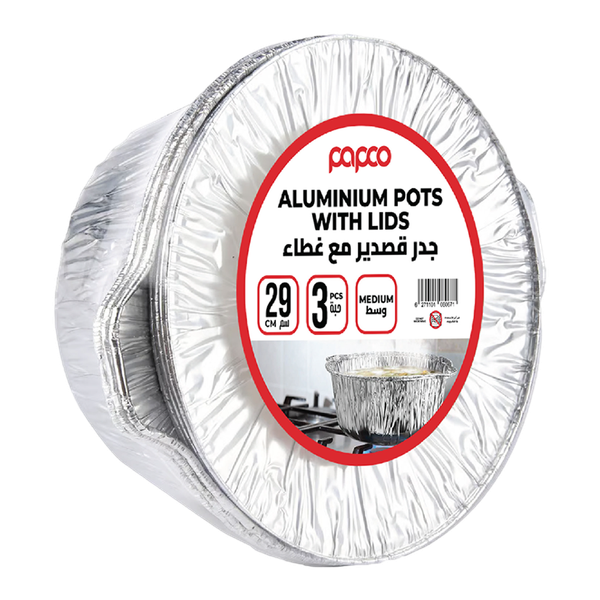 This disposable Papco Aluminum Container Pot is ideal to use on the stove for indoor and outdoor. Easy to carry everywhere - 3 x 29 cm