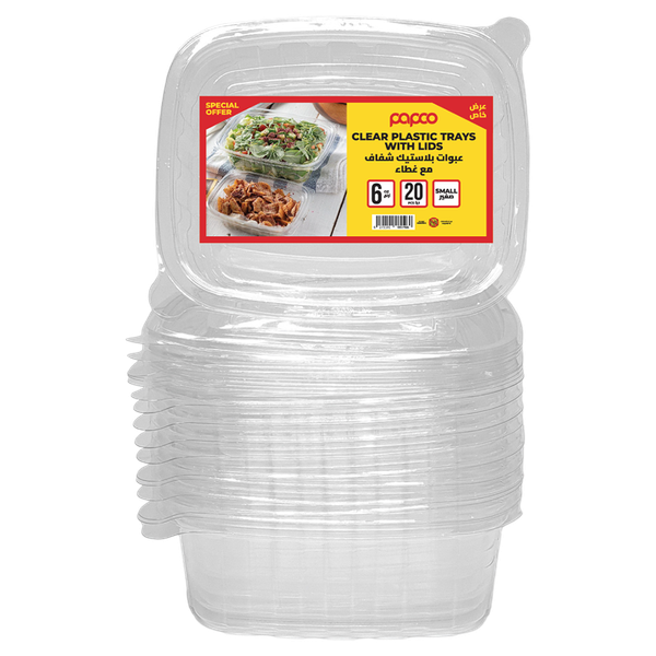 Made with 100% non-toxic plant byproduct material, Leaves no carbon footprint. Safe with hot or cold foods. The Lid is made from recyclable PET plastic - 20 Pcs