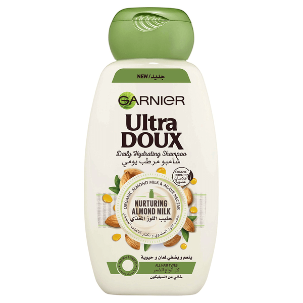Garnier Ultra Doux Nurturing Almond Milk Shampoo associates Organic Almond Milk; a true nutritive treasure to hydrate the hair with no weigh down, and Organic Agave Nectar; light and healthy nectar that is known for its revitalizing properties - 2 x 400 m