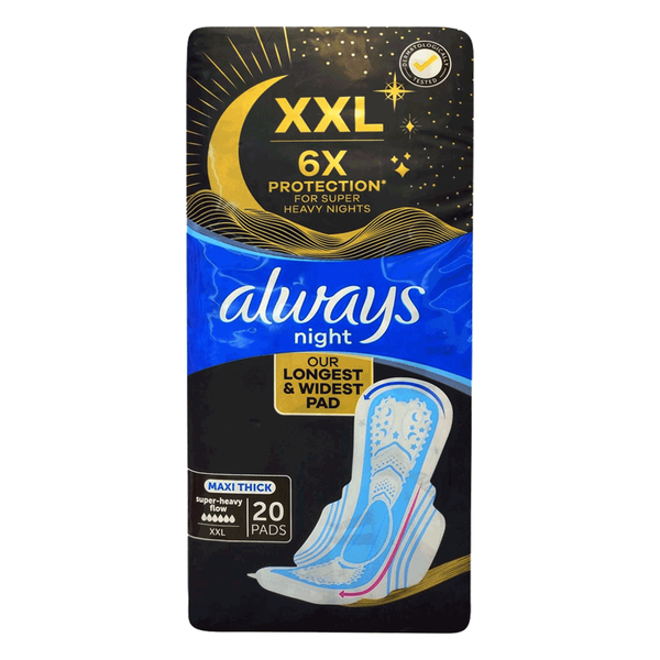 Always night pads are one of the best pads that ensures the ultimate secure night, and it comes with a longer length, wider back & double wings for an all-around coverage for overnight protection against leakage & stains - 20 فوطة
