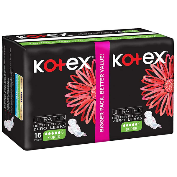Stay protected and enjoy the softness of cotton with Kotex Sanitary Pads. Extra absorbent, thin and extra large pads that prevent any leakage - 16 Pads