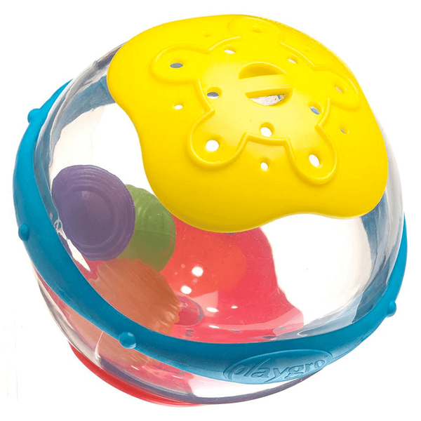 This fun brightly colored ball offers a variety of fun activities and floats in water. The brightly colored balls inside offer a rattling sound when shaken, ideal for auditory stimulation