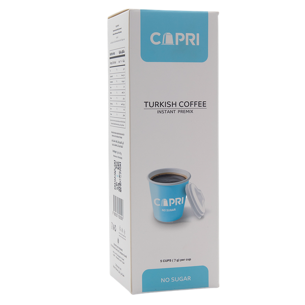 Capri Instant turkish coffee premix without sugar is great to start your day with. Indulge yourself with a unique taste that is beyond any competition - Cup 5 x 7 gm