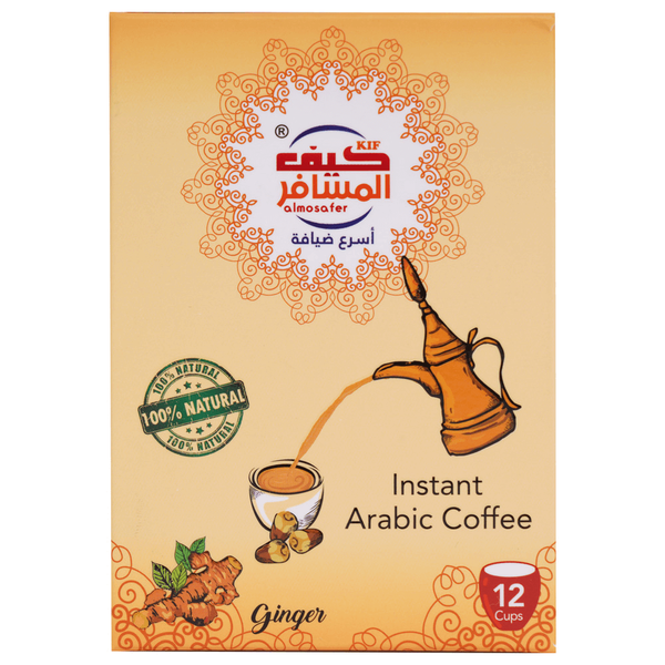 Kif Almosafer Arabic Coffee Ginger is a professional mix of 100% natural ingredients from Harrar coffee beans and the finest kinds of ginger to give you a unique delicious taste - Stick 12 x 5 gm