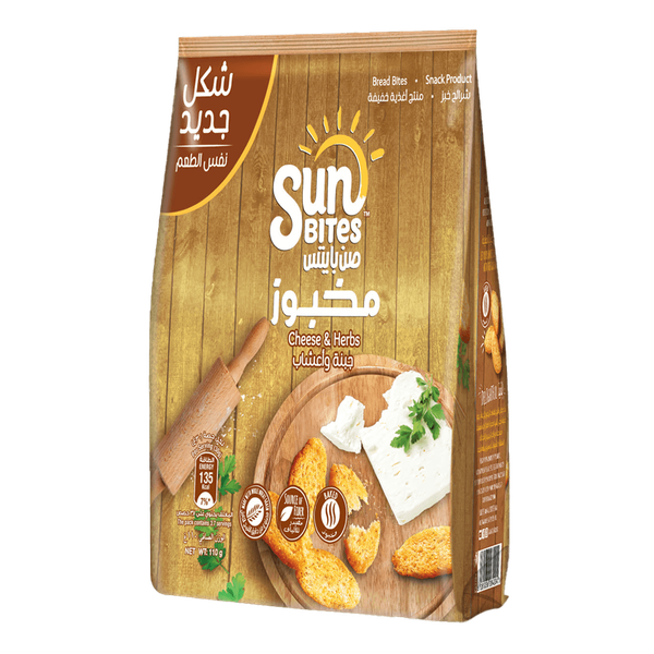 Enjoy a delicate tasting snack of the sunbites cheese and herbs flavored bread bites - 110 gm
