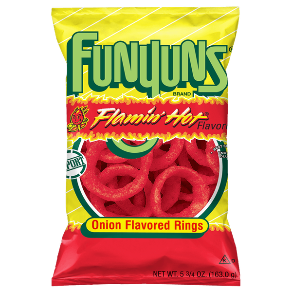 Funyuns Flamin Hot Onion Rings are a deliciously different snack that’s fun to eat, hot with a crisp texture and zesty onion flavor - Pack 1 x 163 gm