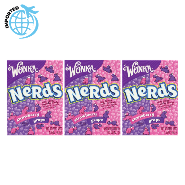 Nerds are tiny, crunchy sour candies, made by taking little crystals of sugar and then tumbling them with successive layers of sour coating, then a coat of color- 3 × 46.7 gm
