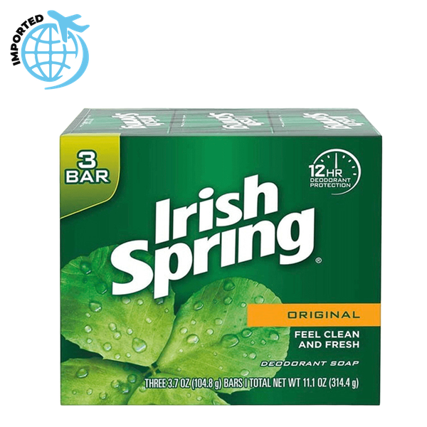 Irish Spring Soap Bar Original. Long-lasting protection with a clean, masculine scent A True Time-Tested Classic! Great invigorating scent Helps keep you feeling clean and fresh - 314.4 gm