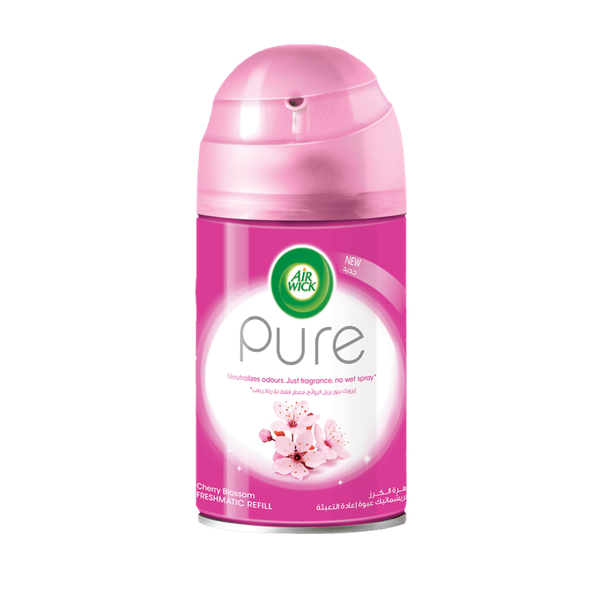 Air Wick Freshmatic Autospray air freshener refill releases bursts of continuous fresh fragrance for up to 70 days. Delight your senses with aromatic Cherry Blossom essence that neutralizes odour 24/7, giving a welcoming touch to any space - 250 ml