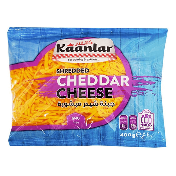 Shredded cheddar cheese made from pasteurized cow's milk, aged and will make all your dishes tastier - 400 gm