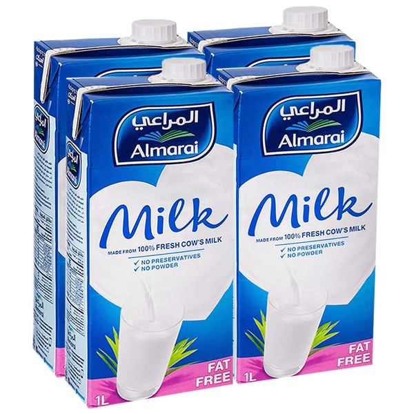 Almarai Fat-Free Milk is made of fresh milk that is loaded with calcium and essential nutrients for your body. Free from any additives or preservatives - 4 x 1 L