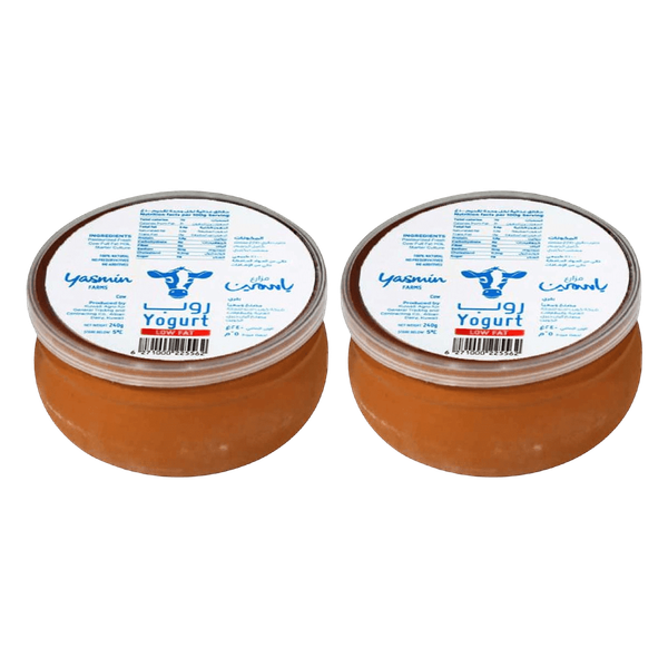 Yasmin Farms Yoghurt Cow Low Fat Clay Pots. Fresh, low-fat yoghurt, contains protein and calcium. Free from preservatives - 2 x 240 gm