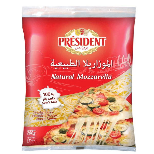 Ready shredded, President’s Mozzarella is just waiting to be sprinkled over a pizza base. Rich, irresistible flavor - 200 gm